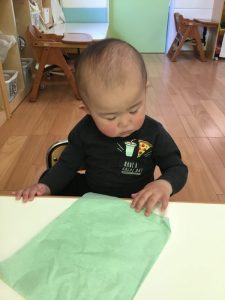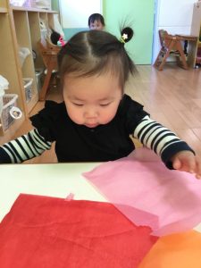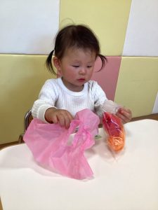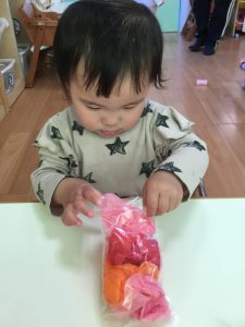 クシュクシュした花紙を今度は袋に入れていくよ✨