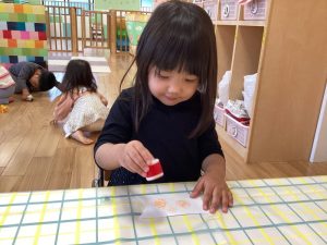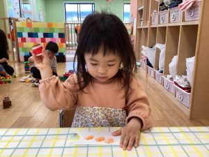 丸めたり入れたりと、たくさん指先を使った製作💕