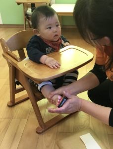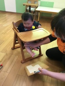 足にトントンと絵の具を塗って🎨足型をとりましたよ😊