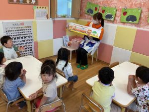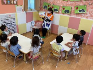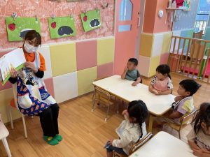 大好きな電車の絵本ということもあり大喜びのりんご組さん🍎