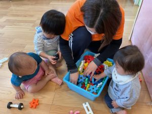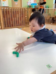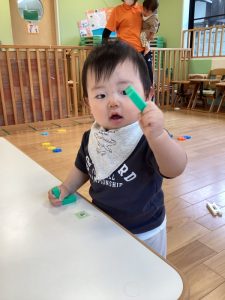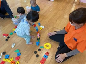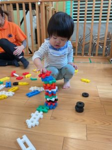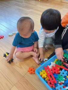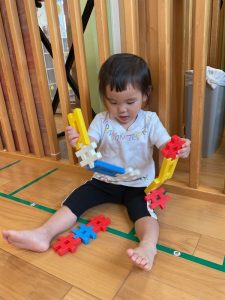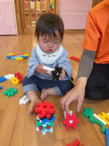 初めは出来上がったもので遊んでいたいちご組さんも、今ではブロックの形を見ながら上手にくっつけることができるようになってきました🤗
