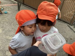 カゴに入れてみんなで観察🦋👀