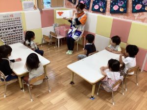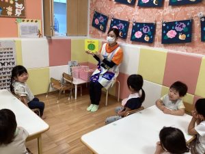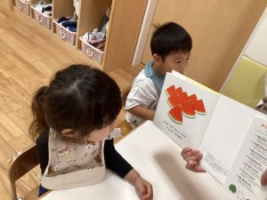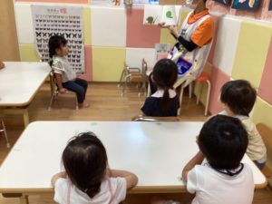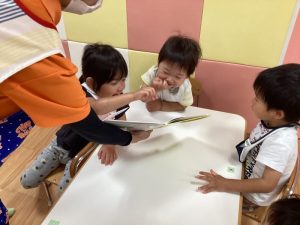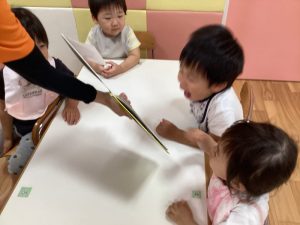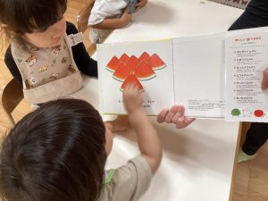 今週の絵本ブログは、りんご組さんが「すいかくんがね」の絵本をみている様子をお伝えしたいと思います🍉✨