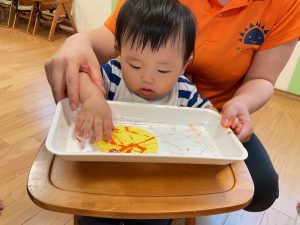 手に絵の具をつけて✨