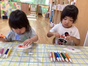 たくさんの技法で製作を楽しんだりんご組さんでした🍎