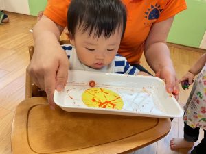 コロコロ転がるビー玉を使って画用紙に模様をつけました✨
