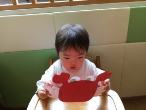 「カニさん🦀」と嬉しそうにニッコリ😆