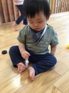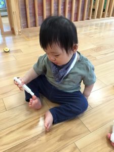 もも組さんもりんご組さんの姿を見て真似っこ😊