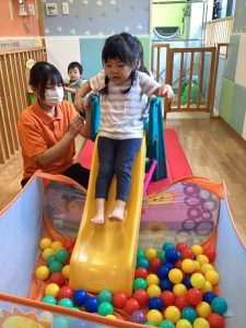 滑り台だけでなく、ボール遊びでもたくさん身体を動かして遊びましたよ🏀