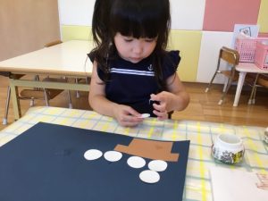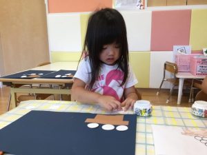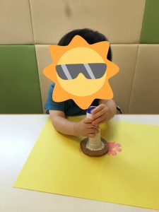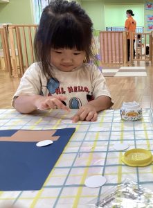 すると、画用紙が動いてしまい、保育者が手でおさえようとすると✨