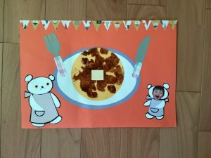画用紙に色を塗って大きなホットケーキを作りました😚