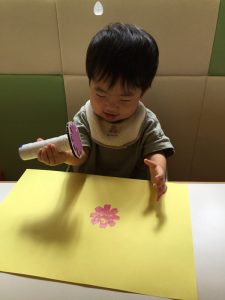 まずはコスモスのお花の形をしたスタンプをペタペタ😁