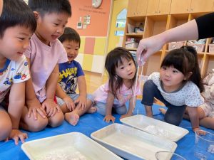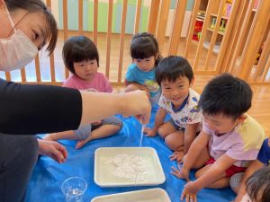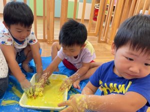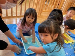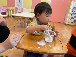もも組さんとりんご組さんは片栗粉粘土を初体験😆✨