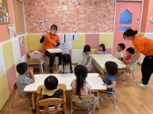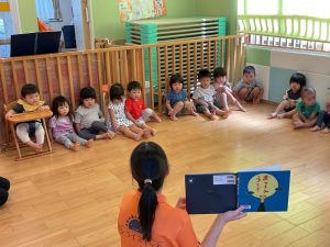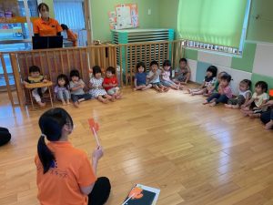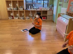 お話しが終わったら、みんなが楽しんで歌ってくれていた「ぽんぽこ たぬき」の歌います🎤