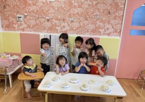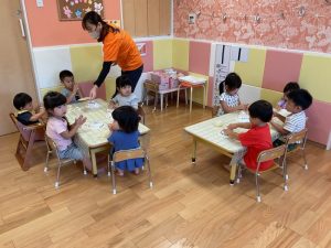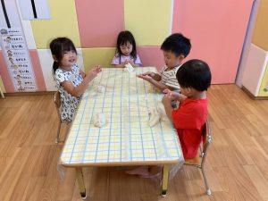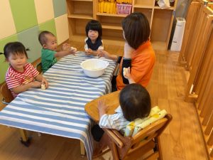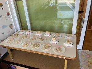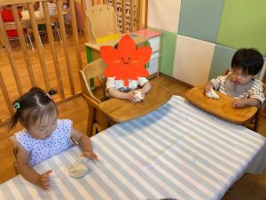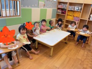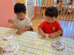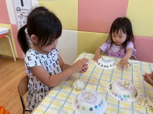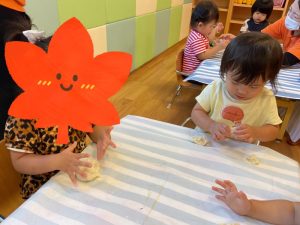 クイズが終わったら、各クラスに分かれて小麦粉粘土を使ってお月見団子作り🎑