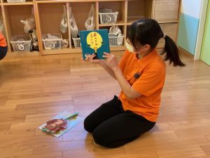 十五夜について知った後は、十五夜にちなんだ「おつきみ うさぎ」の絵本を見ます☆