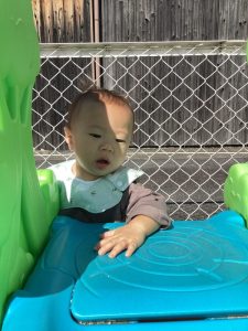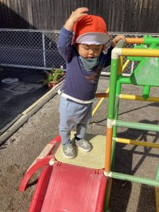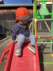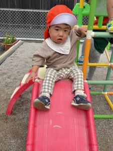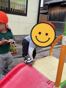 自分で滑り台の階段が登れるようになったもも組さん🍑