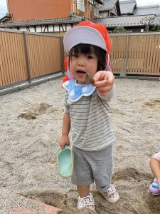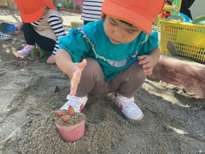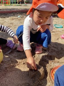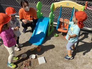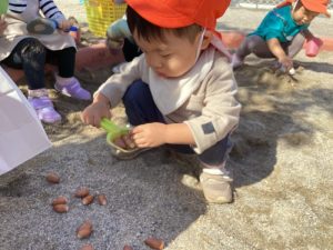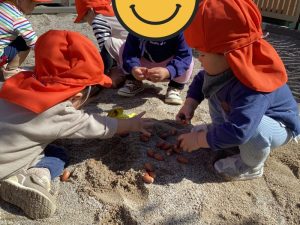 そしてこの日は砂場に大きなどんぐりが🍂