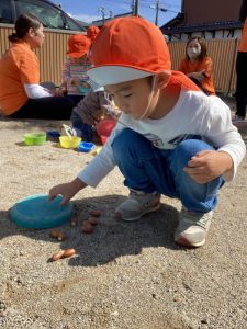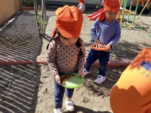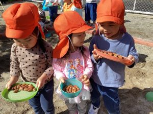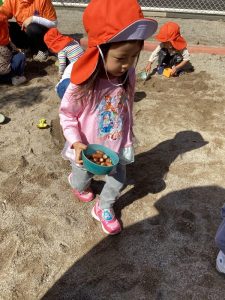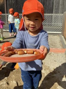 りんご組さんはお皿を持ってどんぐり探しに😄