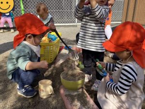 朝晩は寒いですが、日中は冷たい風が気持ちよく戸外遊びが気持ちいい今の時期✨