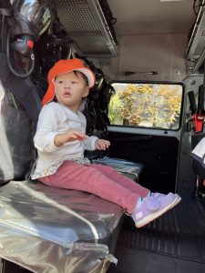 座席に座っていいよと消防士さんが声をかけてくださってドキドキしながら座りましたよ💓