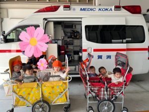 まずはもも組さんといちご組さんは消防署へ🚑