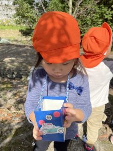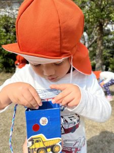 りんご組さんは手作りのお散歩バックを持ってどんぐり集めを楽しみましたよ🥰