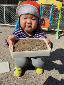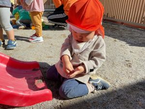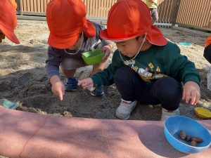 どんぐりはみんなの宝物😊砂の中から出てくると「どんぐりあったー😆」ととっても嬉しそうに見せてくれていますよ😚
