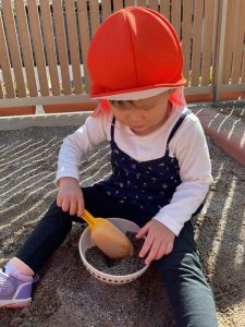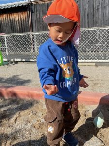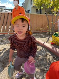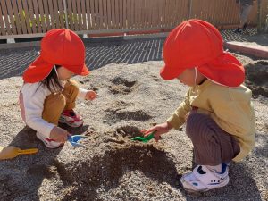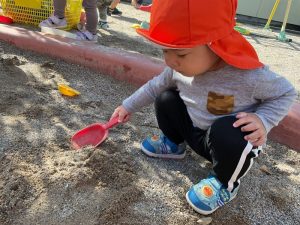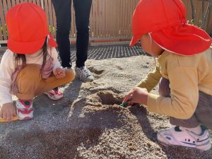 砂場ではりんご組さんが最近大人気のお山づくり⛰