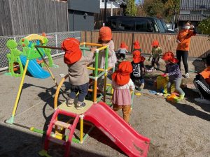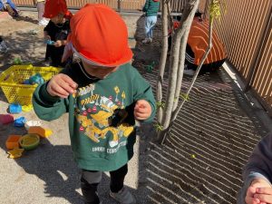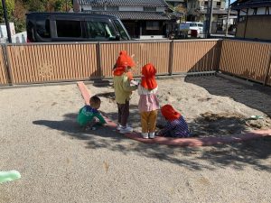 りんご組さんの姿を見ていちご組さんもお山づくり⛰