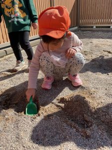どんぐり拾い中砂場では何かを発見😆