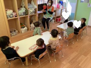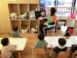 いつも見ている絵本より少し長いお話しですがみんなとっても真剣に聞いてくれていましたよ👻