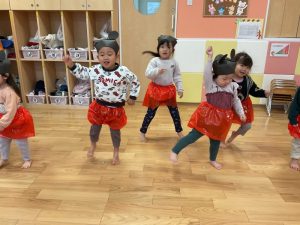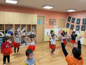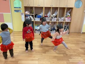 大好きなお家の人とはなれて、ダンスなどを披露したりんご組さん🍎