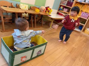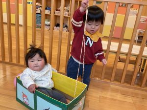 「よいしょ🎵よいしょ🎵」と、引っ張ってバスを動かしたりしてくれました🚌