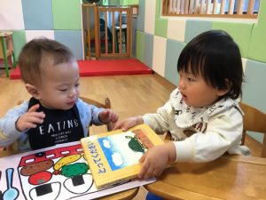 そして見終わった絵本は「どうぞ😆」とお友だちに渡してかえっこを🥰