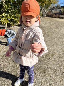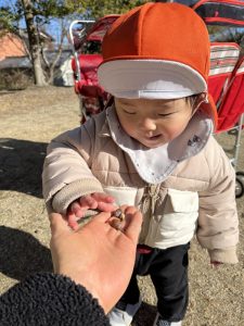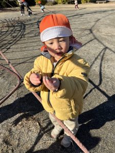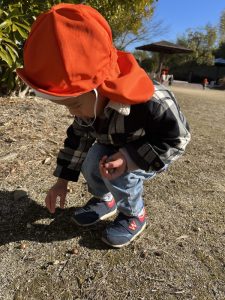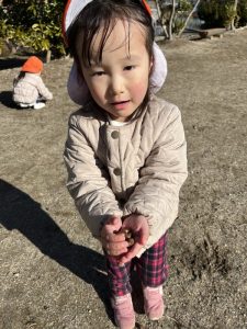 石部タワーで遊んでいるとみてみて😆見つけたよ😚と、見せてくれたのはどんぐり😄