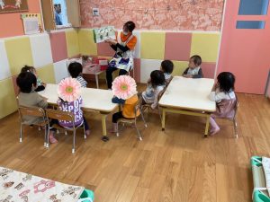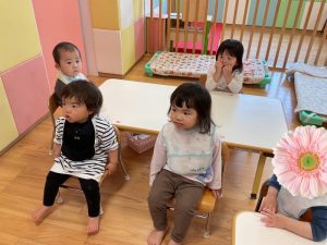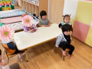 今週の絵本ブログはりんご組さんが「おやおや、おやさい」の絵本を見ている様子をお伝えします🍀