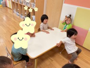 絵本が終わってからは絵本の中に出てきた石が転がる場面を「コロコロー♫」と言いながら手をくるくるさせて表現してくださっていましたよ😊