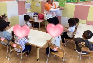 今週のブログはりんご組さんが「かえってきたカエル」の絵本を見ている様子をお伝えします✨