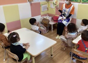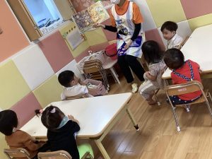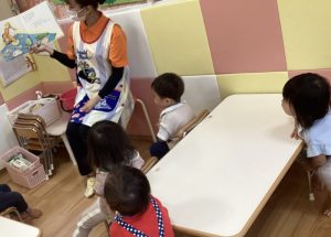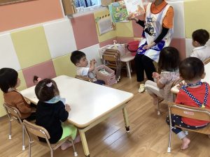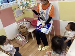 今週の絵本ブログはそんな時に時にぴったりな「あめのひ えんそく」の絵本をりんご組さんが見ている様子をお伝えします☂️