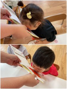 今週の絵本ブログはりんごぐみさんが暑い夏に食べたくなるスイカが出てくる「すいかくんがね」の絵本を見ている様子をお伝えします🍉