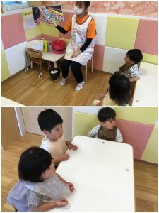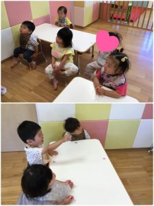 今週の絵本ブログは音な夏ならではのイベントが楽しみになる「わにわにのおでかけ」の絵本をりんごぐみさんが見ている様子をお伝えします🐊