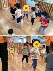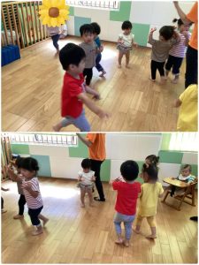 お歌やリズムが終わったら今度は体全体で表現して楽しみます🚶‍♀️
