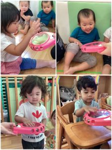 「はあい」とお返事しながらタンバリンをトントントン✋