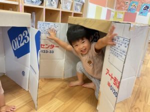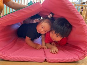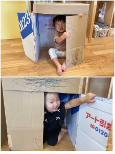 マットがトンネルに変身するとお友だちと中でかくれんぼ☺️✨