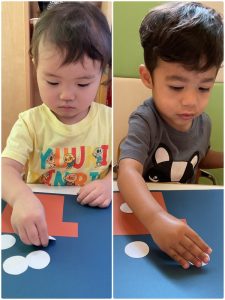 糊を塗った丸の紙を画用紙に貼っていくよ😆
