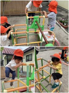 すーいすいっとジャンブルジムに登ったり長い間ぶら下がったり😆✨