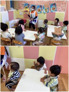 1ページの言葉の数も少なく繰り返しきているうちに言葉を覚えてきてくださり保育者と同じように絵本を読んでくださる姿も☺️❤️