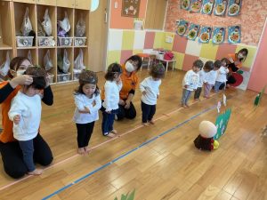 りんご組さんは線の上に立ち、セリフもばっちり👍