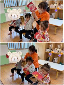 何度もお散歩バックに中を見たり、保育者に見せたりしてくれました♡